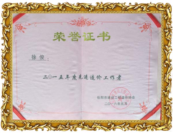 我公司榮獲2015年度岳陽(yáng)市工程造價(jià)協(xié)會(huì)先進(jìn)單位榮譽(yù),同時(shí)徐俊,倪娟榮獲岳陽(yáng)市造價(jià)協(xié)會(huì)2015年度優(yōu)秀個(gè)人榮譽(yù)。